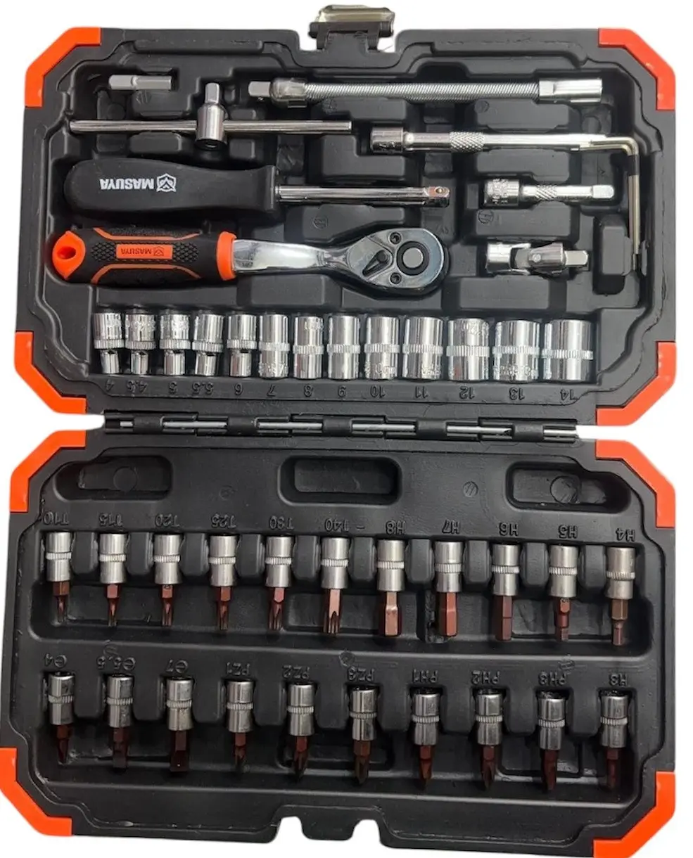 🔧 Incluye herramientas indispensables para reparaciones rápidas.🧰 Estuche rígido organizador que protege y mantiene todo en su lugar.↔️ Extensiones y barra flexible, ideales para trabajar en lugares difíciles.⚙️ Llave Cricket reversible, suave y eficiente.💡 Set variado de puntas y tubos, perfecto para múltiples tareas.Contenido del Kit