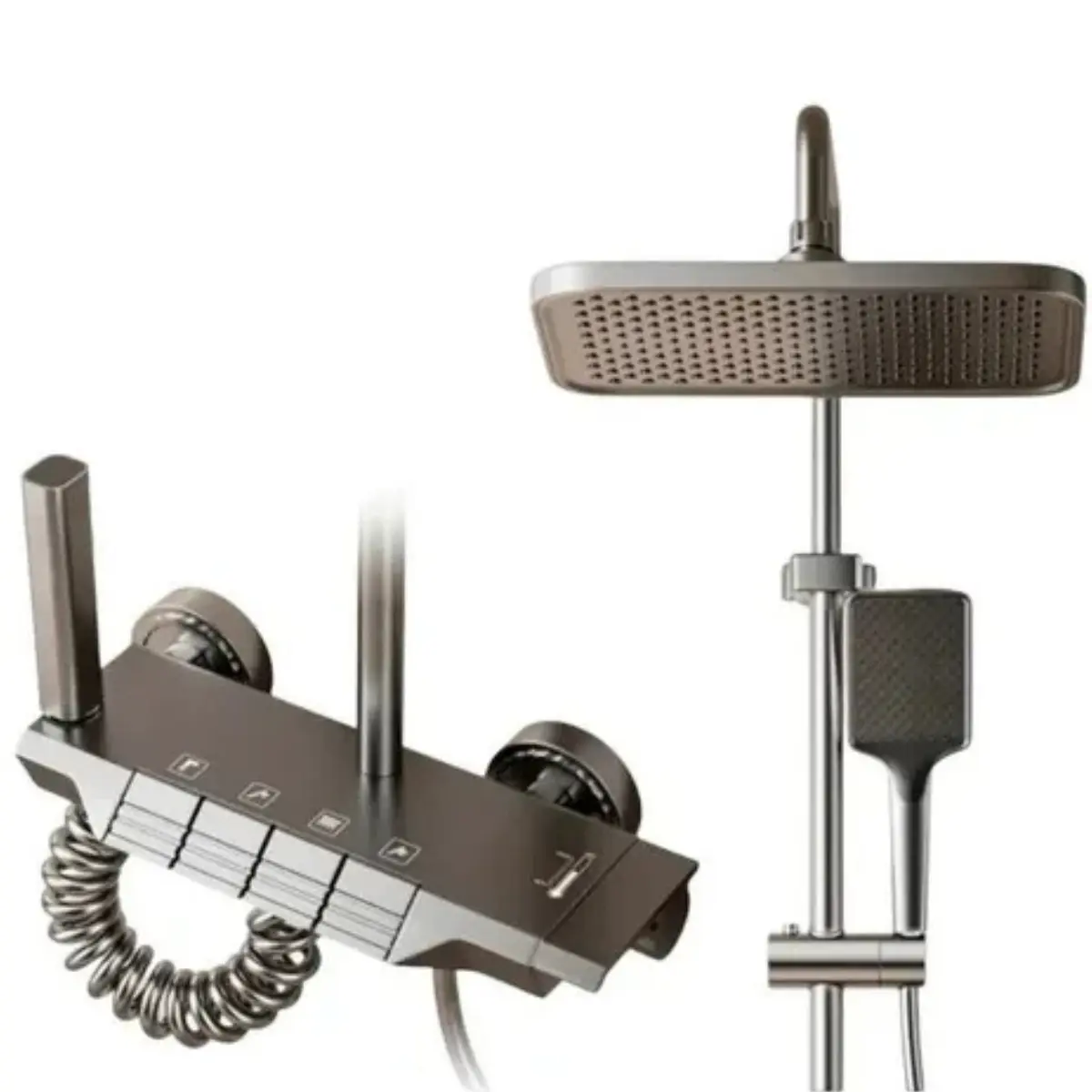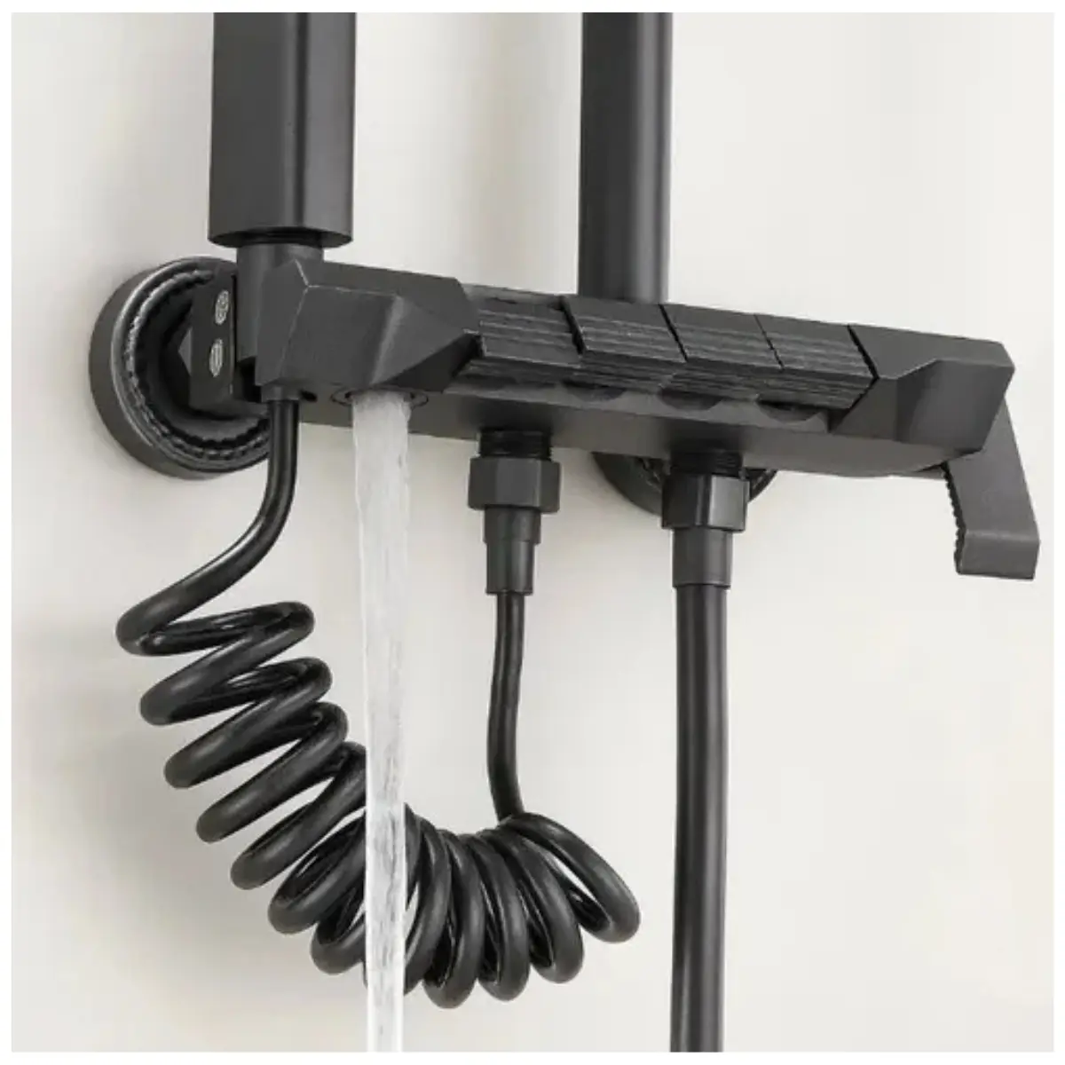 - Ducha de Doble Salida: Incluye una ducha superior y un mango de ducha ajustable, ofreciendo versatilidad para diferentes tipos de uso.